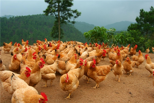 林下放养的三黄鸡。