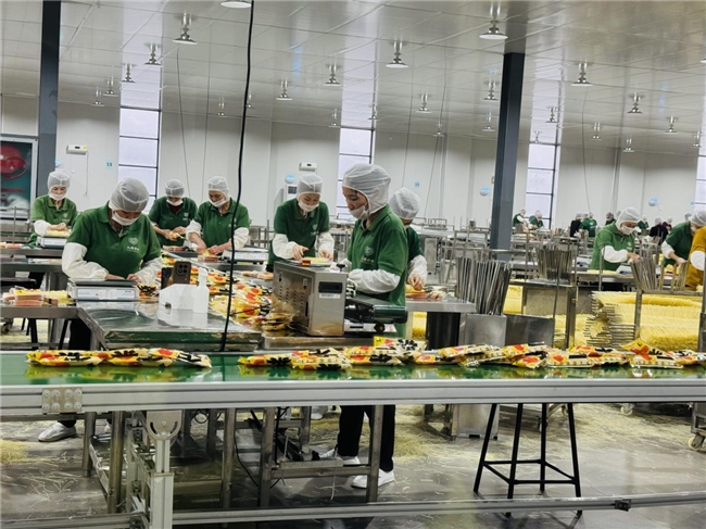 米粉包装加工车间里,工人们熟练地将烘干好的干米粉放入包装机进料口。