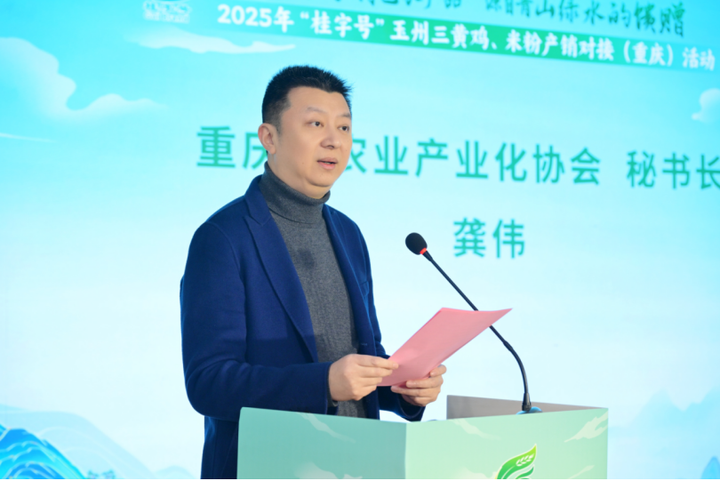 重庆市农业产业化协会秘书长龚伟在致辞中表示,重庆作为西南地区农产品集散中心,消费市场潜力巨大,商贸流通活跃,餐饮文化繁荣,对高品质、有特色的农产品需求旺盛。以独特品质、醇厚风味著称的玉州三黄鸡和玉州米粉完全有实力、有潜力在重庆乃至更广阔的西南市场赢得消费者的青睐。